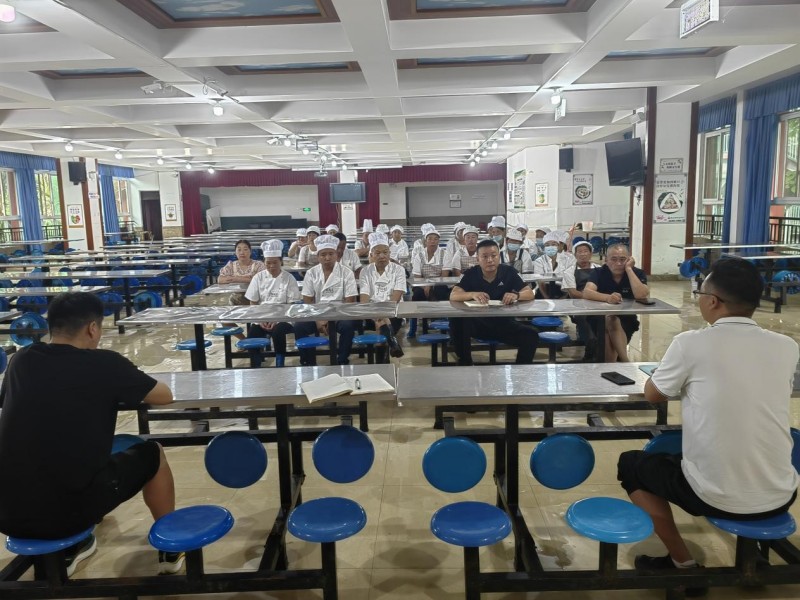 后勤工作部署会结束后,总务科黄应富组织学校食堂、超市全体员工召开了食品安全及法律法规培训会,会议重点学习了凉山州“校园餐”工作及学校领导对学校食品安全的相关要求。