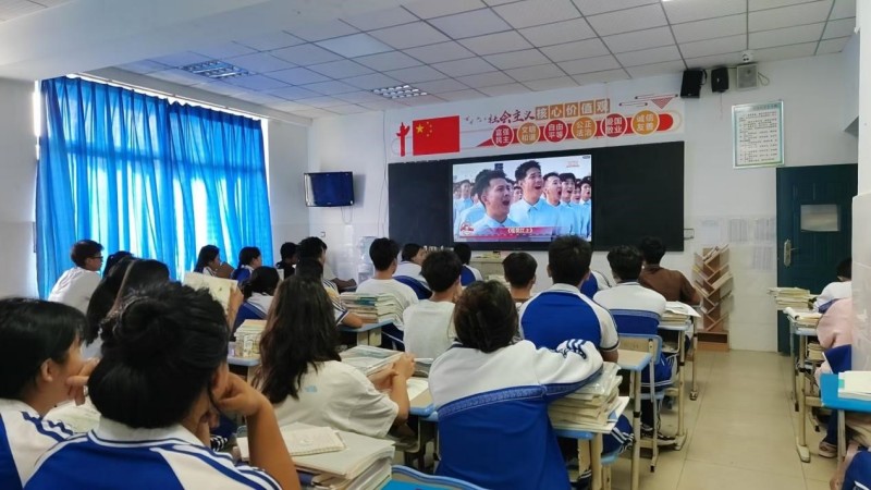 观看过程中,师生们全神贯注,不时发出赞叹声。当展现抗战历史的环节出现时,学生们聚精会神,被革命先辈的英勇事迹深深打动。