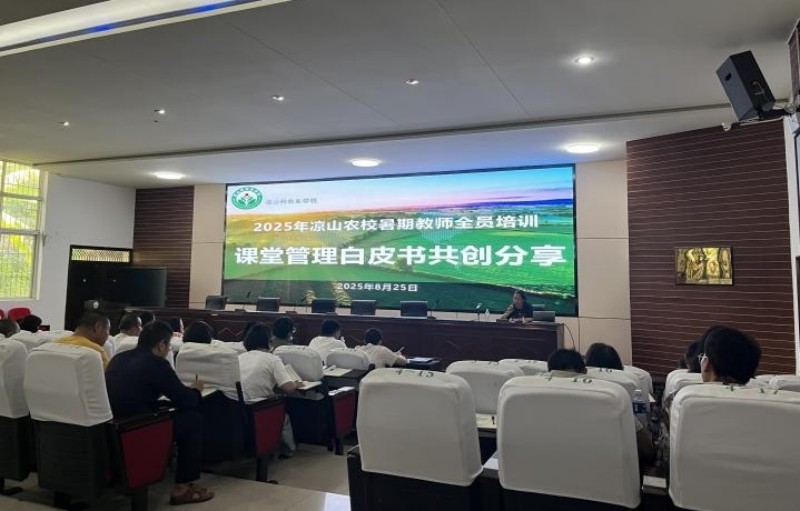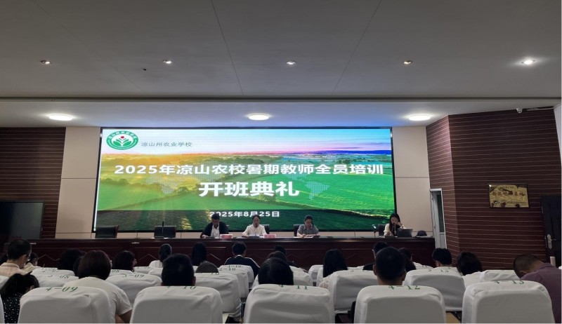 2025年8月25日上午,凉山州农业学校一年一度的暑期教师全员培训正式启动。副校长罗朝玉在开班典礼上强调,本次培训旨在系统提升教师课堂管理、教学质量及育人能力,切实推动学校教育教学高质量发展。教务科余彪科长强调要严肃培训纪律,副科长龙奕杉就课程安排作了详细说明。